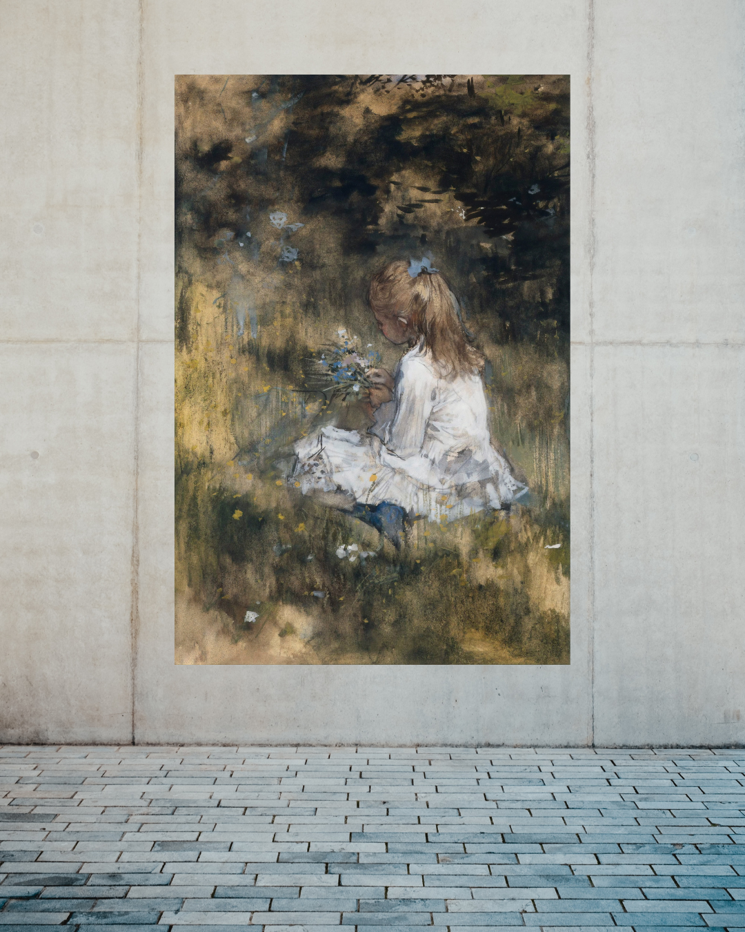 Una Niña con Flores en la Hierba